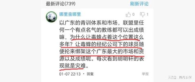 廣東球迷終于憋不住了,對杜鋒進行了怒噴,總的意思是怒批杜鋒任人唯親,更說出了幕后一些真相。有球迷說,以廣東的青訓體系和市場,聯(lián)盟里任何一個有點名氣的教練都可以出成績嘛,為什么讓毒蜂占著這個位置這么多年?讓毒蜂的經(jīng)紀公司下的球員隨便掄,來綁架這個廣東最大的市場和資源以及成績呢。每次看到胡明軒的表現(xiàn)就是災難?!北娝苤?,杜鋒的姐姐杜梅有一個經(jīng)紀公司,廣東隊有多名隊員是杜梅名下的隊員。陳家政打得再好也是得幾分鐘時間,而那些爛銅爛鐵卻得到20幾和30幾分鐘。