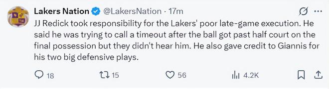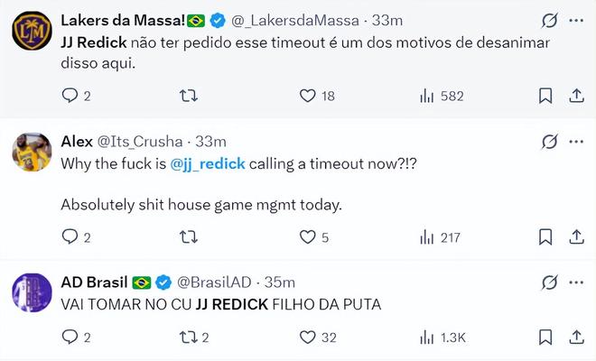 湖媒:雷迪克根本沒有請求暫停,這才是我對湖人失去信心的原因之一。這場比賽真的糟透了。