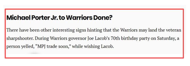 一系列細節跡象更是暗示這筆交易已進入倒計時階段。在勇士老板喬-拉科布的生日派對上,有賓客直接大喊“很快就會有小波特的交易了”,這一公開場合的表態絕非空穴來風,大概率是交易推進順利的側面印證。與此同時,籃網已將小波特從周一對陣灰熊的比賽名單中移除,理由標注為“輪休”,但這一解釋難以令人信服。要知道,本賽季小波特已出戰多場背靠背比賽,上賽季效力掘金時亦是如此,在交易傳聞愈演愈烈的節點突然輪休,顯然不符合常理。而在NBA歷史上,交易臨近時將球員移出比賽名單,避免其在交易完成前受傷影響交易價值,已是聯盟通行的操作慣例,這無疑為交易的達成增添了重要砝碼。