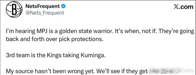 多個籃網(wǎng)方面的消息人士在X上透露,小波特即將加盟勇士