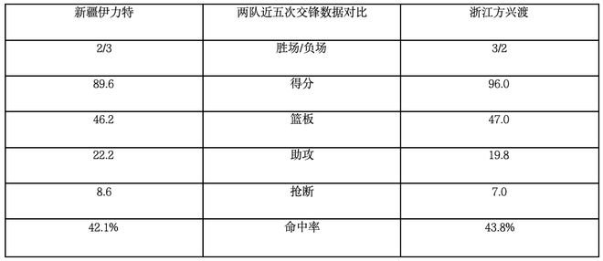 本賽季兩隊(duì)交手1次,浙江方興渡1勝0負(fù)。
