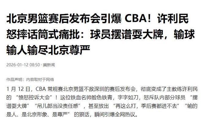 尤其是1月11日對戰深圳男籃的比賽中,北京隊的表現更為糟糕。