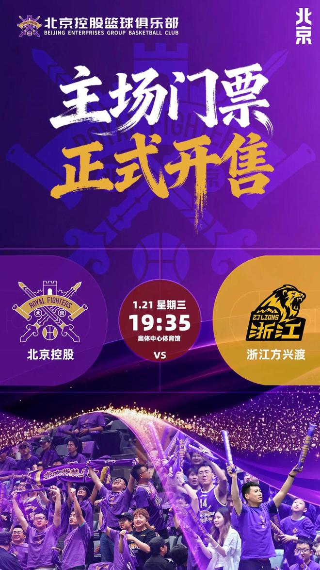 - 【票務公告】北控男籃對陣廣廈男籃主場門票將于1月14中午12:18開售