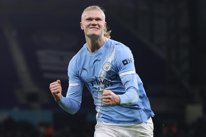 英超第21輪主場迎戰布萊頓的比賽中,哈蘭德點球破門為曼城首開記錄。