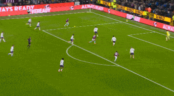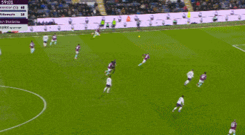 半場補時第1分鐘,多爾古輕巧挑射,艾斯特福門線解圍。