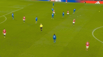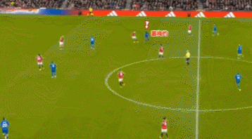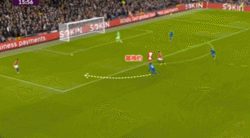 這一次的退防可以從曼聯的后場30米區域看起,當時塞梅尼奧處于無球狀態,他意識到曼聯的左邊中衛盧克肖將會前插,于是塞梅尼奧非常警覺地一路高速回追。